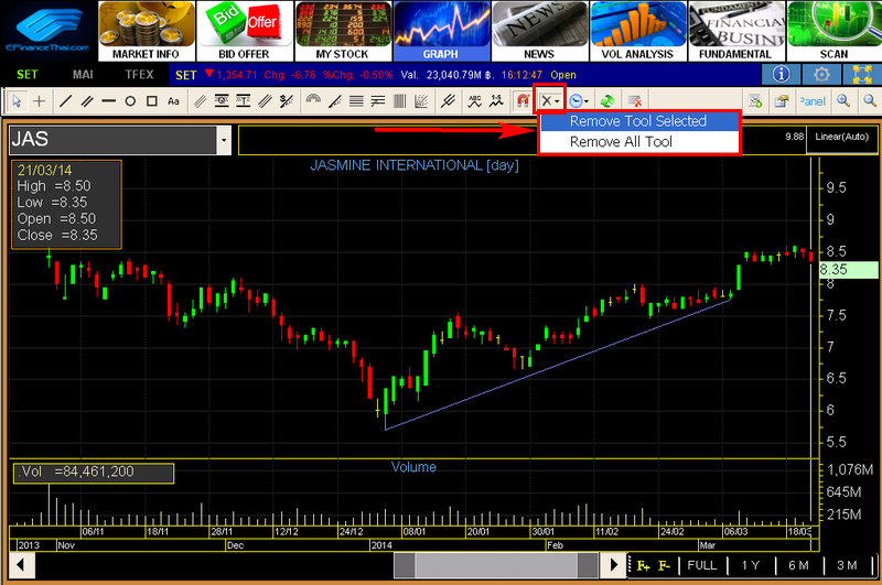 หากต้องการลบ ให้กดที่เส้น 1 ครั้ง แล้วกดที่สัญลักษณ์ X เลือก Remove Tool Selected